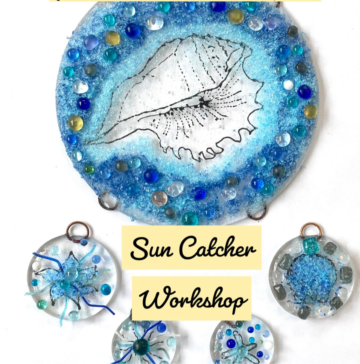 At the end of the workshop, I will fire everyone’s glass project in the kiln and assemble with wire and email you for collection.